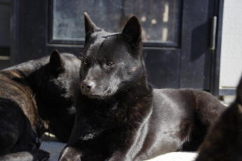 | 2003年の5月に、我が家に一番最初にきた牡の「力」です。 この後、甲斐犬に魅せられて 2003年10月には牝の「風花」が来ました。 2004年6月には「力」と「風花」の子犬4頭が産まれ そのうちの2頭が我が家に残った「夢花」と「乃多花」です。 甲斐犬愛護会の展覧会に出犬して、成犬牝の部で 「夢花」1席、「乃多花」2席をいただきました。 乃多花が、2008年8月26日に7頭の子犬を産み、 続いて夢花に、2009年2月12日、5頭の子犬が生まれ 現在に至っています。 2009年4月5日の、第129回甲斐犬愛護会の展覧会で 総合優良犬の部で、乃多花が晴れの総合優良犬優勝大優勝旗を いただきました。 乃多花の静岡へ行った子犬が、3席、6席を獲得しました。 |